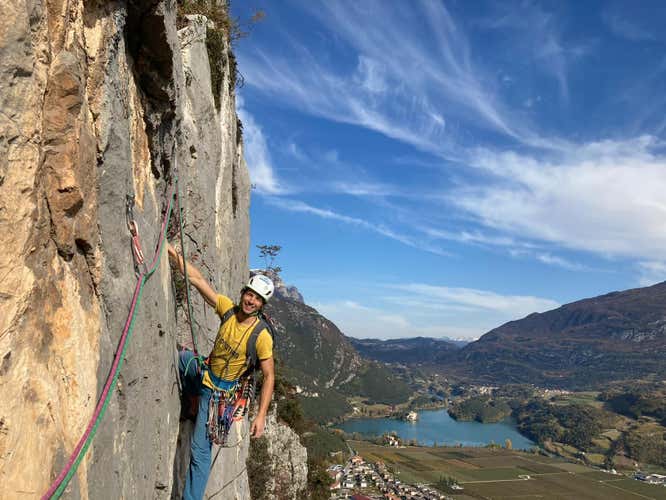 Una giornata dedicata all'arrampicata sulle pareti rocciose della Valle del Sarca ti aspetta! Scegli il percorso più adatto alle tue capacità ed esperienze insieme a una guida alpina esperta. Armati di coraggio e inizia la scalata!