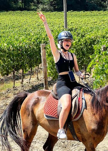 Una volta raggiunto il maneggio, saremo pronti per il nostro giro a cavallo. Dopo un breve briefing, monteremo in sella e inizieremo la nostra passeggiata a cavallo tra rigogliosi vigneti, boschi autoctoni, uliveti e colline dove vengono prodotti i famosi vini del Chianti. Durante l'escursione di circa un'ora ci godremo la calma della campagna toscana, i suoi colori e profumi, procedendo tranquillamente al passo.