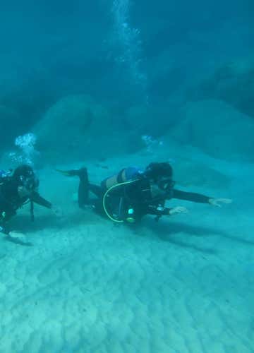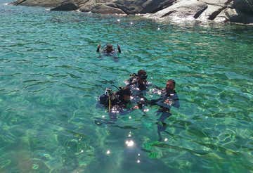 Indosseremo l'attrezzatura e faremo il nostro ingresso in acqua: uno alla volta, ci immergeremo in compagnia dell'istruttore fino a massimo 6 metri di profondità per circa 20-30 minuti. L'immersione si svolgerà in tandem con l'istruttore, per cui non dovremo preoccuparci di gestire alcuna attrezzatura. Saremo più che altro incantati dal mondo marino che ci circonderà, abitato da castagnole, barracuda, polipetti e altre specie caratteristiche del territorio!