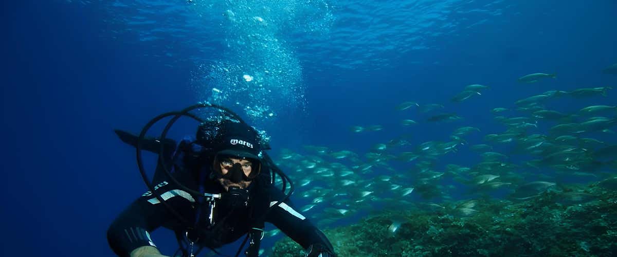 Quando ci sentiremo sicuri e sapremo respirare sott'acqua e compensare correttamente, inizieremo la discesa insieme alla nostra guida. Raggiungeremo una profondità massima di 8 metri, nuotando tra murene, dentici e banchi di barracuda. Vivremo l'emozione di esplorare le bellezze del mondo sommerso per circa 30 minuti e ci rilasseremo, divertendoci.