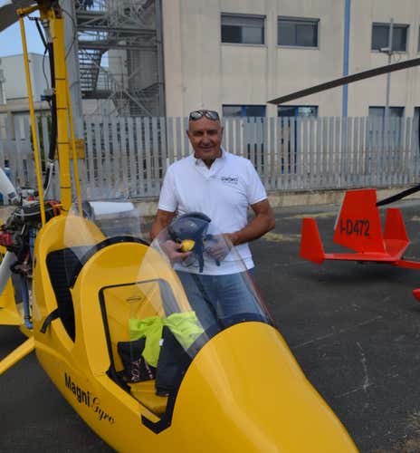 Al tuo arrivo ti presenterò la mia scuola di volo e ti accompagnerò al mezzo, del quale ti spiegherò i principi di funzionamento e tutte le informazioni utili per il nostro volo. Il velivolo è un particolare autogiro modello MAGNI gyro che per volare utilizza i due sistemi propri dell’elicottero e dell’aereo.