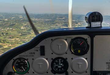 Giunti al momento del decollo, sarà l'ora di spiccare il volo: volerai per 30 minuti sopra il territorio di Langhe, Monferrato e Astigiano; potrai scattare foto a borghi e castelli, da una prospettiva unica. E ancora più emozionante sarà prendere il controllo del velivolo: il pilota ti cederà i comandi, per provare a praticare manovre e virate!