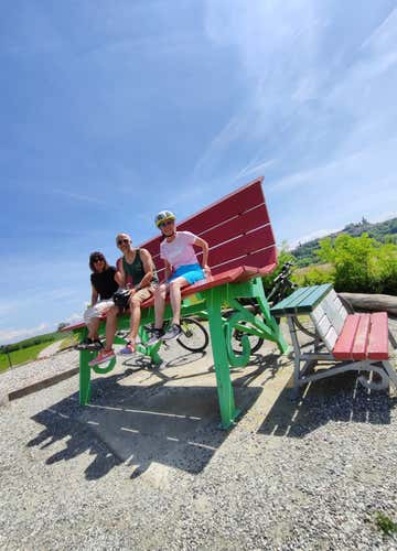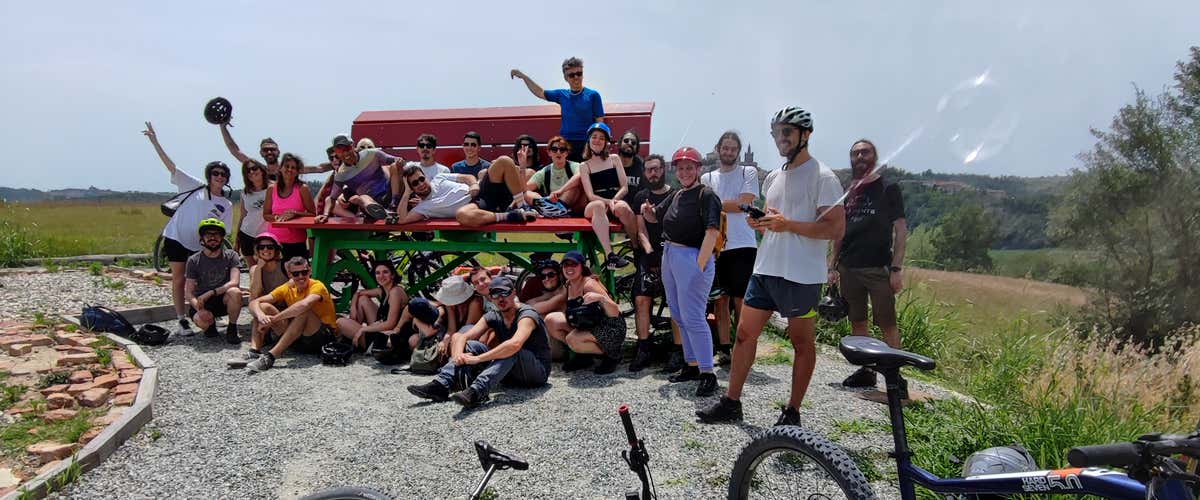 Inizieremo a pedalare in gruppo lungo un percorso che si snoda tra le colline del Monferrato e le iconiche "Big Bench", le colorate Panchine Giganti che costellano il territorio.