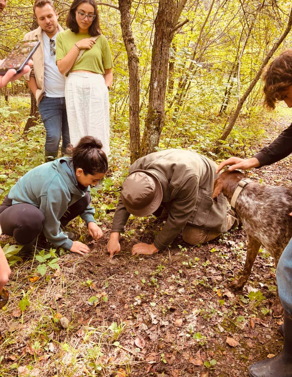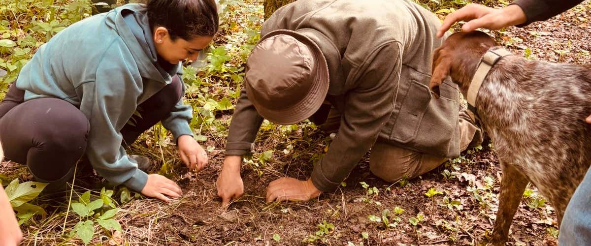 Quindi, guidati dal fiuto infallibile dei due cani da tartufo, raggiungeremo a piedi la tartufaia con una passeggiata di circa 10 minuti. Qui inizierà la ricerca vera e propria, durante la quale il trifolao ci spiegherà come nasce il tartufo e le caratteristiche dell'ambiente e della vegetazione che ne favoriscono la crescita.