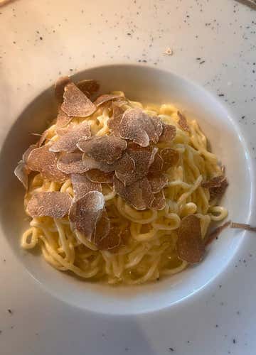 Ma l'avventura non finisce qui! Una volta tornati al cascinale, infatti, potremo accomodarci per una degustazione gourmet: un piatto a scelta con 5 g di tartufo bianco grattato, un calice di vino, un dessert, acqua, pane e coperto. Insomma, un momento di puro gusto che celebra il protagonista della giornata!