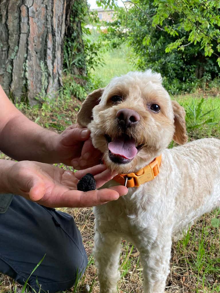 Radunati tutti i partecipanti l'esperienza comincerà con un brindisi di benvenuto, prima di recarci nella tartufaia privata della tenuta. Seguirà un'introduzione sul mondo del tartufo, prima di dare il via alla caccia vera e propria: a farci strada sarà Pino, un simpatico lagotto romagnolo pronto a mettere il proprio olfatto a nostra disposizione. Una volta individuato il tartufo, potremo partecipare direttamente all'estrazione secondo le indicazioni del tartufaio.