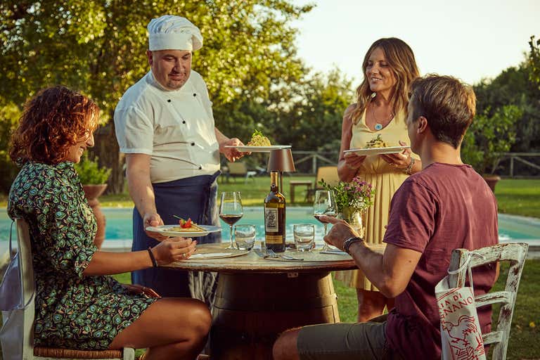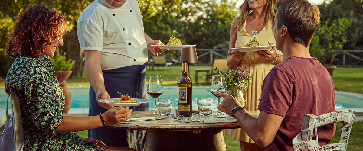 Lo sanno bene a Fattoria di Corsignano, dove potrai accomodarti per una cena degustazione con abbinamento vini. In questa tenuta biologica nel Chianti Classico, scoprirai come il Sangiovese sappia essere il compagno di viaggio ideale per i piatti della tradizione toscana, in'atmosfera calda e familiare.
