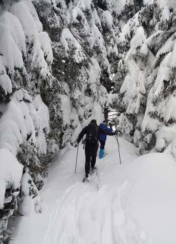 Quindi daremo inizio alla nostra ciaspolata sulla Piana del Gaver, nel cuore del Parco dell'Adamello. Con le ciaspole ai piedi, attraverseremo boschi di abeti, ampie radure e scorci spettacolari sulle cime circostanti. Potremo ammirare il Cornone del Blumone, la cima più alta e imponente dell'Adamello meridionale, e altre cime che superano i 2.100 metri, come il Monte Misa.