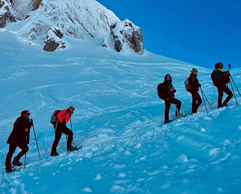 Una volta radunati tutti i partecipanti, parteciperemo a un breve briefing e ci verranno consegnate ciaspole e racchette (non incluse e da saldare in loco). Partiremo da un'altitudine di 1721 metri, passando sotto la Cima dei Siltri e ammirando vette maestose, tra cui il Monte Lemma.