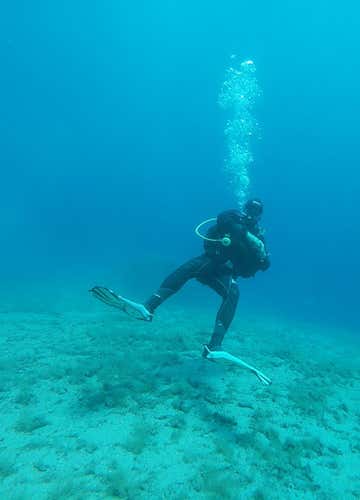 Ed eccoci pronti per avventurarci in mare aperto, per la nostra immersione in acqua libera di 30 minuti: ci immergeremo in autonomia fino a massimo 12 metri di profondità, sempre sotto la supervisione dell'istruttore che si troverà vicino a noi e sarà pronto a fornirci supporto.