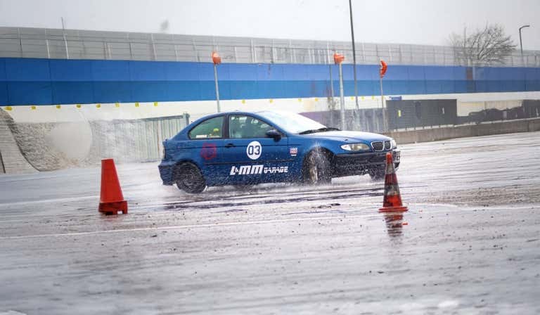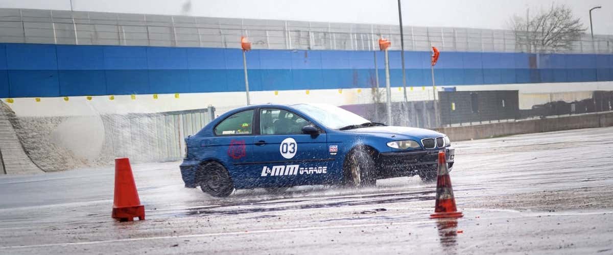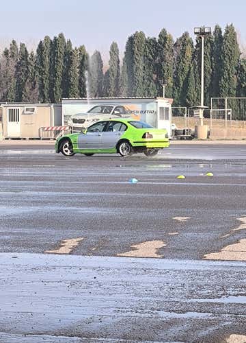 Nel pomeriggio si entra nel mondo del drift. Dopo una breve introduzione teorica, ci spostiamo su un piazzale dedicato di circa 60 × 70 metri, lo spazio ideale per lavorare in sicurezza sul sovrasterzo. Qui impariamo a far partire la derapata, a gestirla con gas e volante e a mantenerla in modo fluido e controllato, con esercizi progressivi che seguono il tuo livello.