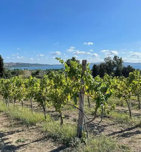 Inizieremo con una passeggiata tra i filari di circa 20 minuti. Saliremo dolcemente in collina per circa 150 metri fino a raggiungere un punto panoramico: qui ci fermeremo per ammirare la bellissima vista sul lago, mentre la guida ci racconterà la storia dell'azienda e le caratteristiche delle uve coltivate, dai blend storici di Trebbiano e Malvasia fino ai vitigni internazionali come Merlot e Syrah.