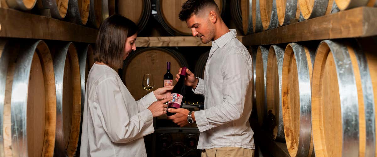 Se le condizioni meteo lo permetteranno, inizieremo con una passeggiata nel vigneto di circa 10 minuti, il modo migliore per connettersi con la terra prima di vederne i frutti. Proseguiremo poi all'interno per la visita della cantina, dove esploreremo i processi di vinificazione che trasformano l'uva in "nettare di leggenda". Il tour durerà circa 20-30 minuti.