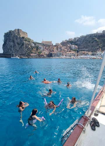Raggiungeremo la splendida Scilla, punto finale della nostra esplorazione. A seconda delle preferenze del gruppo, potremo optare per una sosta a terra di circa un'ora a Chianalea, il borgo dei pescatori dove le case poggiano direttamente sugli scogli, oppure dedicarci a una sosta bagno di pari durata nelle acque di Marina Grande.