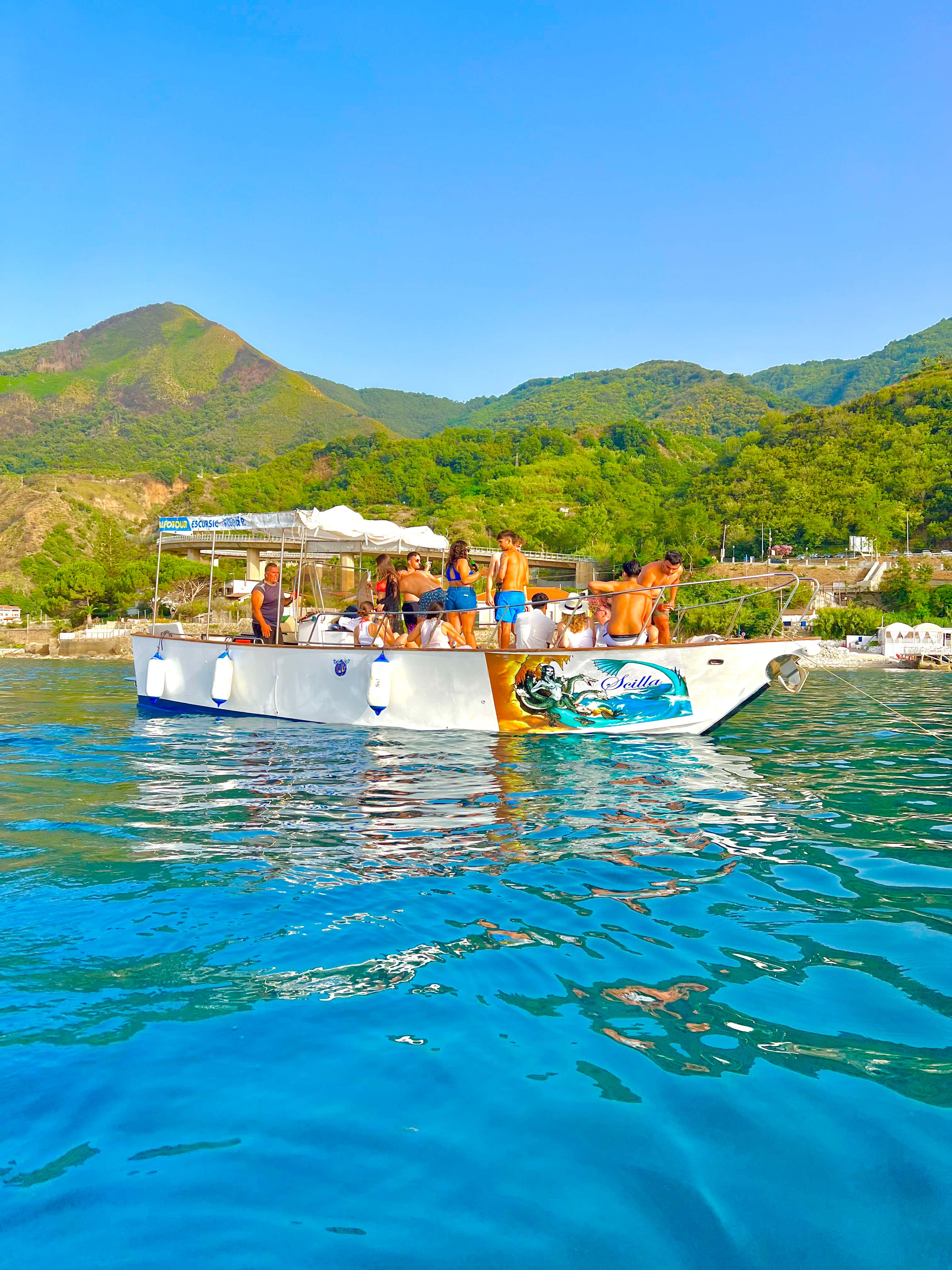 L'imbarcazione è la barca a motore Scilla, lunga 10 metri e dotata di tendalino e doccetta esterna. Le calzature non sono ammesse a bordo, si rimane a piedi scalzi. I cani sono ammessi: contatta lo skipper ai recapiti indicati nell'e-mail di conferma della prenotazione per valutare l'effettiva possibilità di portare a bordo il tuo amico a quattro zampe.