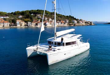 L'appuntamento è 30 minuti prima dell'orario indicato in fase di prenotazione ad Alghero. In qualità di skipper professionista ti darò il benvenuto a bordo della mia imbarcazione, un catamarano Lagoon 421 ribattezzato Toschiuga, e ti presenterò l'hostess di bordo Tania.