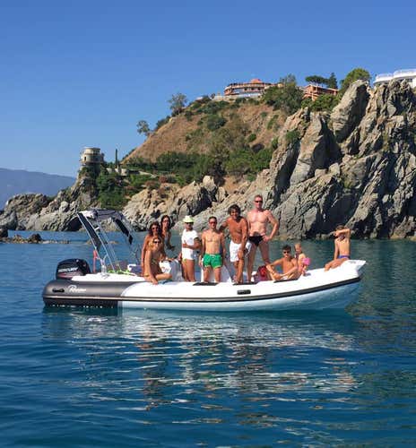 L'escursione viene svolta a bordo di un gommone di 6,80 m, dotato di tendalino e doccetta d’acqua dolce.