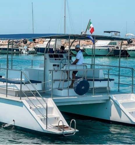 L'imbarcazione è un catamarano molto spazioso, dotato di sedute, ampio tendalino, servizio igienico, scaletta di risalita, dotazioni di sicurezza, doccetta d’acqua dolce, stereo e cabina.