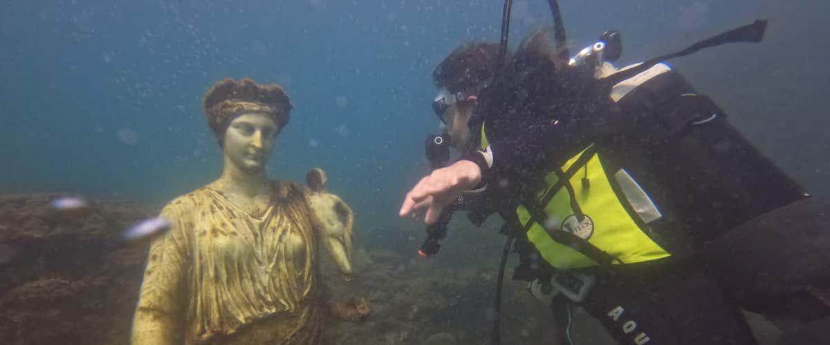 - Trascorri oltre 30 minuti sott'acqua nuotando tra antiche statue, colonne e mosaici