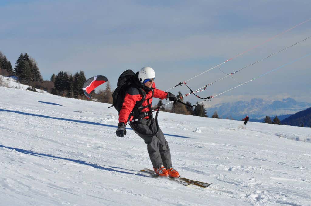 Lo snowkite è, di fatto, la versione invernale del kitesurf: a bordo della tavola o degli sci, impugnerai una barra collegata a un aquilone e ti lascerai trasportare dal vento sulla neve a gran velocità!