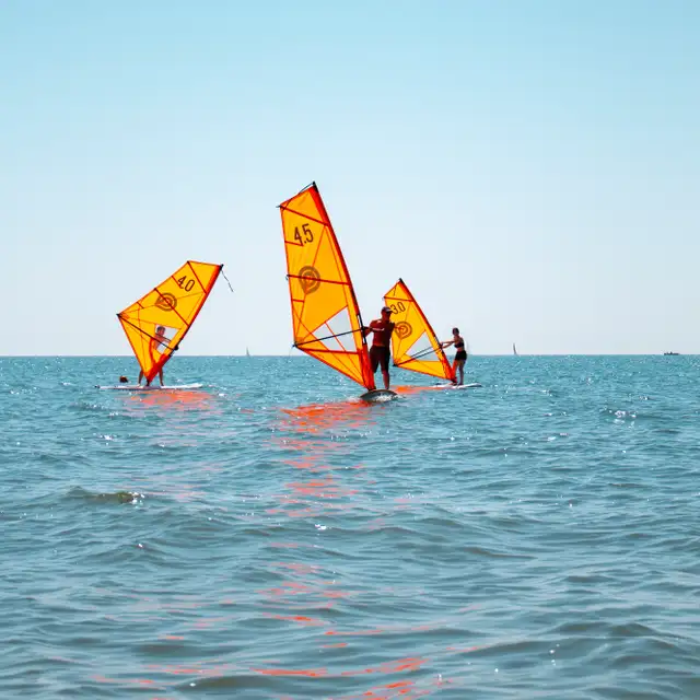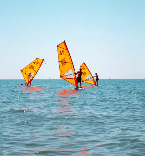 Una volta pronti, entreremo in acqua e saliremo sulla tavola, cercando di mantenere l'equilibrio e imparando a gestire la vela grazie ai consigli dell'istruttore, che starà sempre al nostro fianco per darci sicurezza. Nel corso della lezione, proveremo a migliorare la nostra tecnica, mettendoci alla prova!