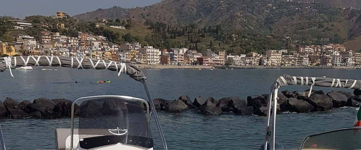 Trascorri mezza giornata o una giornata intera, a tuo piacimento, via mare: avventurati senza patente nautica alla scoperta di Mazzarò, Letojanni, Capo Sant'Andrea e altre meraviglie naturali della costa di Taormina.