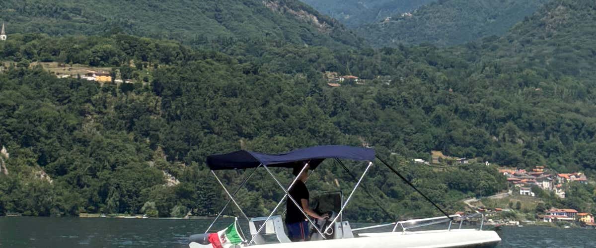 Potrai scegliere in totale libertà il tuo itinerario, navigando lungo le sponde del Lago d'Orta. Ad esempio, potrai raggiungere l'Isola di San Giulio, una delle mete più ambite, oppure Orta San Giulio, il borgo affacciato sull'acqua, dove potrai ormeggiare al pontile per una pausa rilassante. Durante la rotta potrai fare un bagno nelle acque limpide del lago, prendere il sole o rilassarti all'ombra sotto il tendalino.