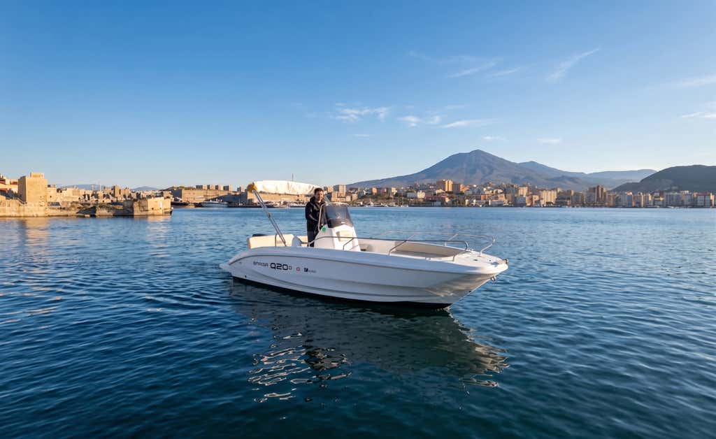 Prima di salpare in compagnia della tua ciurma di massimo 5 persone, assisterai a un briefing introduttivo per prendere confidenza con l'imbarcazione, una barca a motore Barqa Q20 dotata di tutti i comfort.