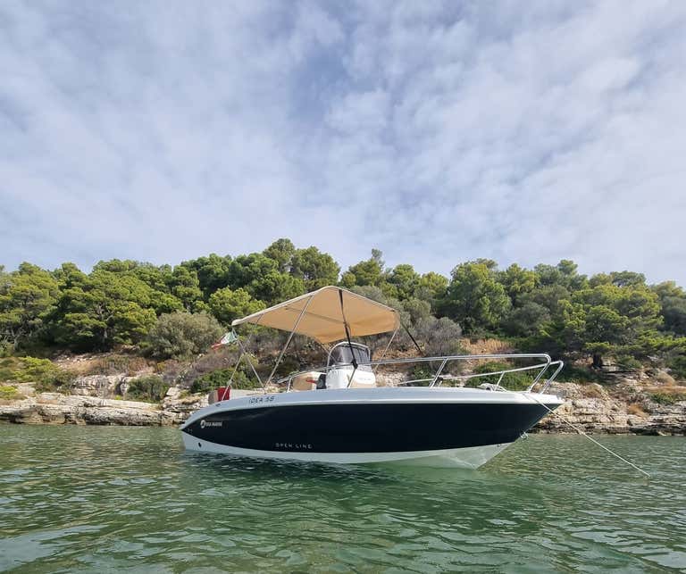 Partendo da Vieste, avrai a disposizione un'imbarcazione moderna lunga 5,85 metri, ideale per accogliere una comitiva fino a 7 persone.