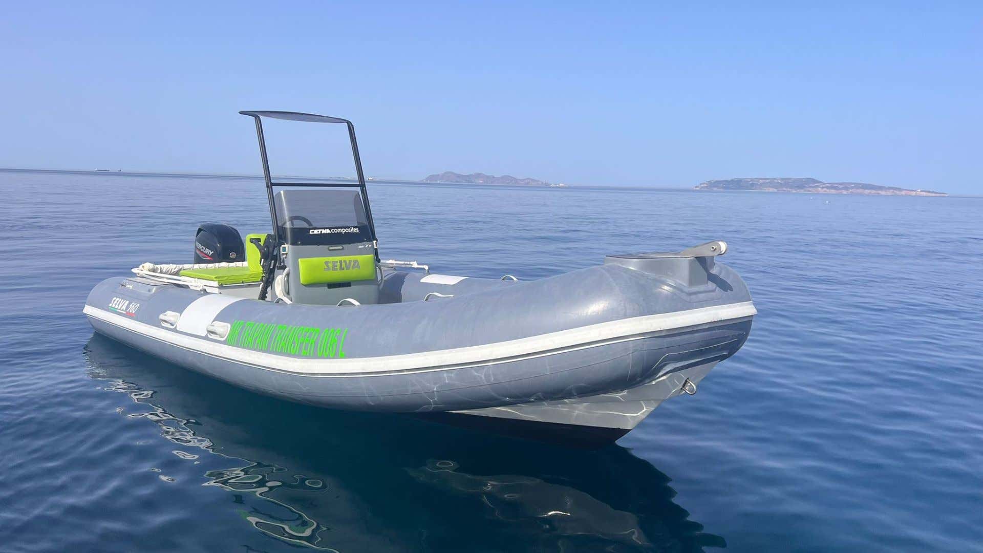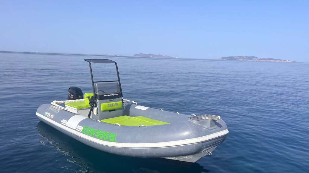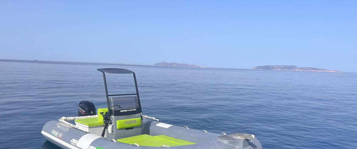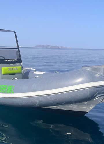 L'imbarcazione a disposizione per il noleggio è un gommone Selva di 5,60 metri con motore Mercury da 40 CV, completo di dotazioni sicurezza, GPS, doccetta d'acqua dolce, radio, tendalino parasole e mini igloo.