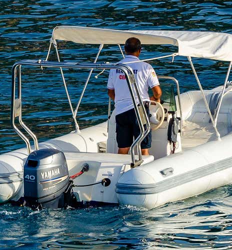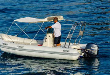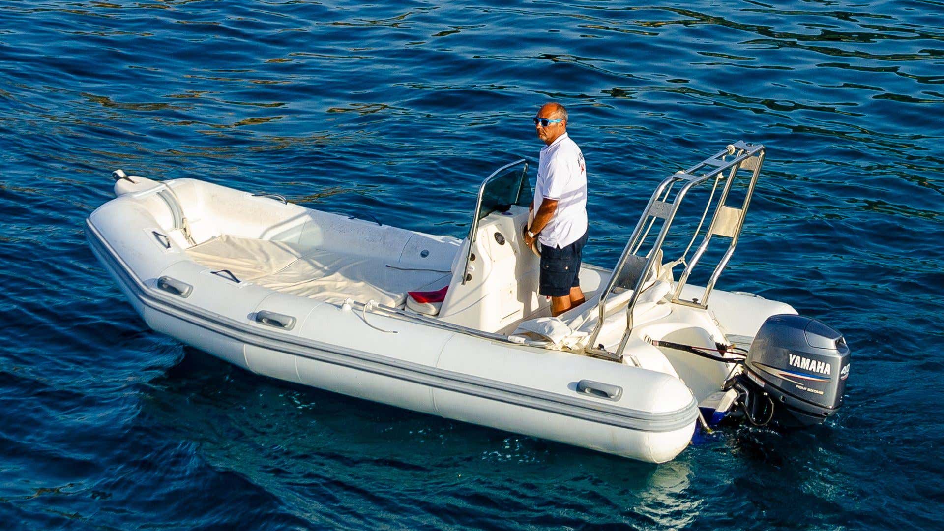 Il gommone Zodiac, lungo 5 metri e con motore di 40 CV, è dotato di ogni comfort, tra cui tendalino, scaletta e tutte le dotazioni di sicurezza necessarie. Il gommone sarà fornito con il pieno di carburante, così potrete salpare senza pensieri alla scoperta della costa.