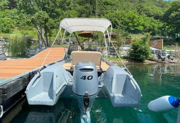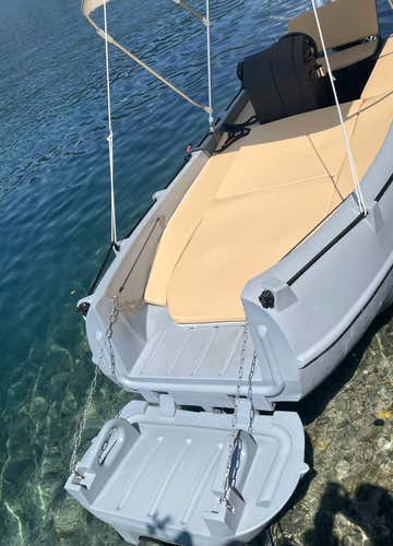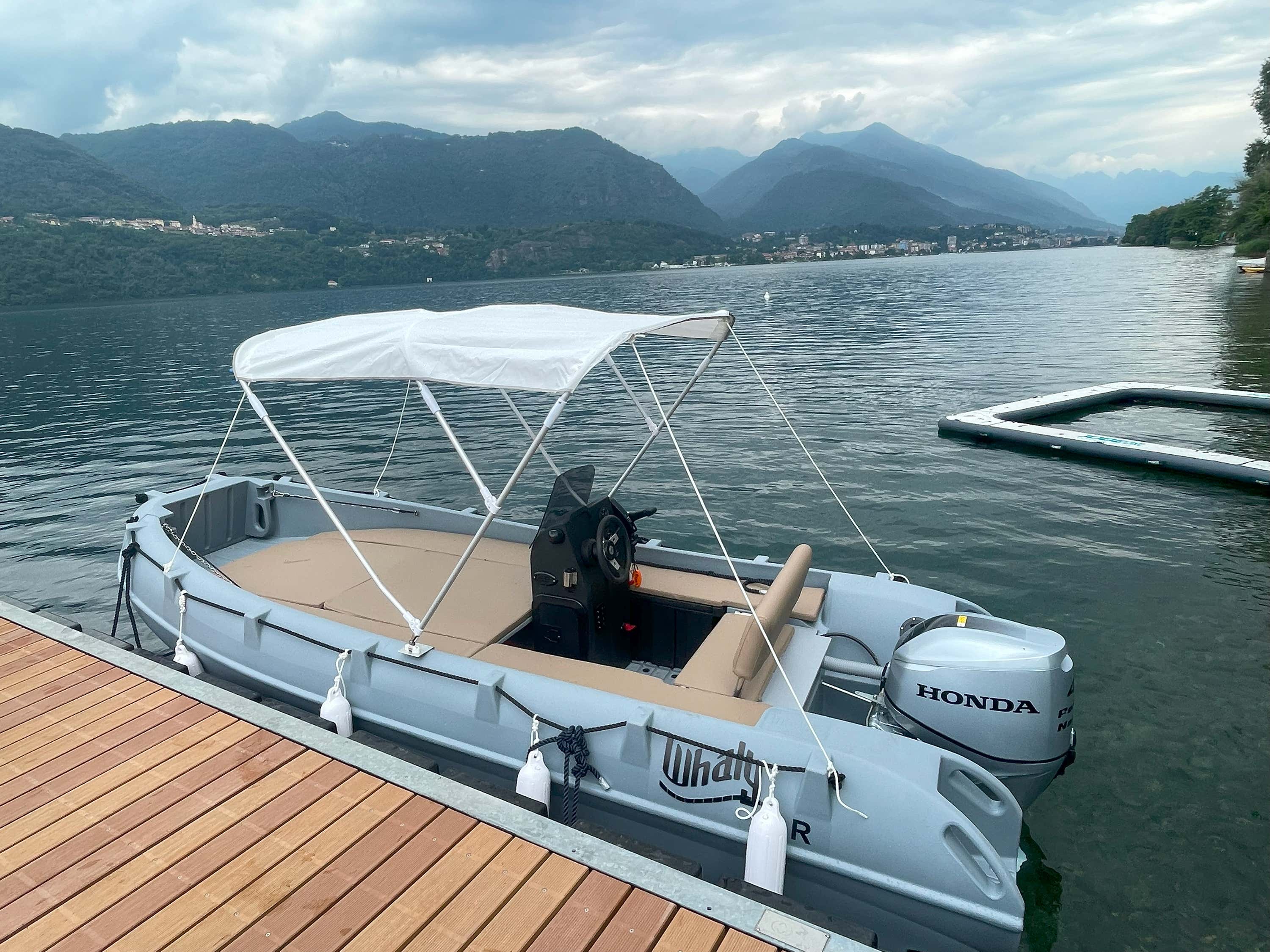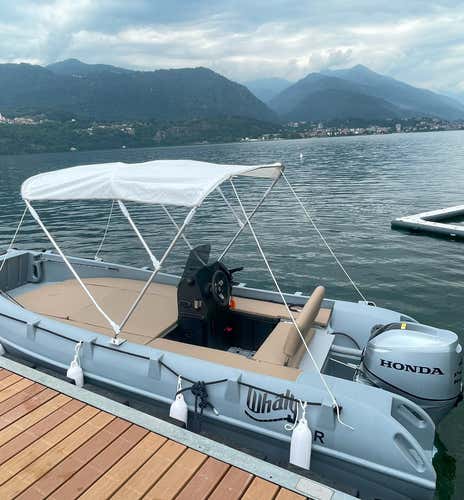 Noleggia un gommone Whaly Performance di 4,55 metri di lunghezza e motore 40/60 CV: l'imbarcazione può portare fino a 8 persone ed è ideale per esplorare il lago e le sue spiagge nascoste, senza bisogno di patente nautica.