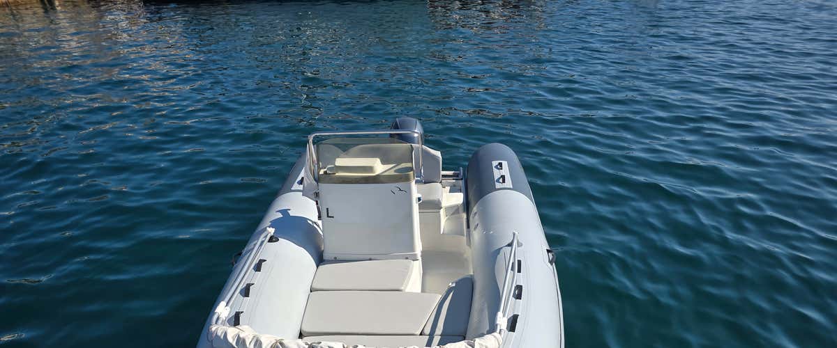 Il gommone di lunghezza 5,50 m e motore da 40-60 CV è dotato di tendalino, prendisole e doccetta d'acqua dolce. A bordo si rimane a piedi scalzi.