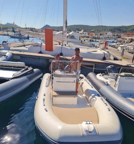 Noleggia un gommone da 5,50 metri e trasforma il tuo sogno in realtà, navigando sulle acque smeraldo dell'Arcipelago di La Maddalena. Con un motore da 40 CV, sarai tu il capitano, anche senza patente nautica!