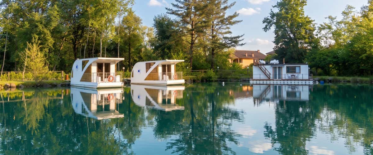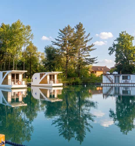 In provincia di Torino, su un tranquillo laghetto immerso nel verde, ti aspetta un soggiorno fuori dal comune: una notte su una vera houseboat, dove il relax incontra il design e l'atmosfera è perfetta per staccare la spina.
