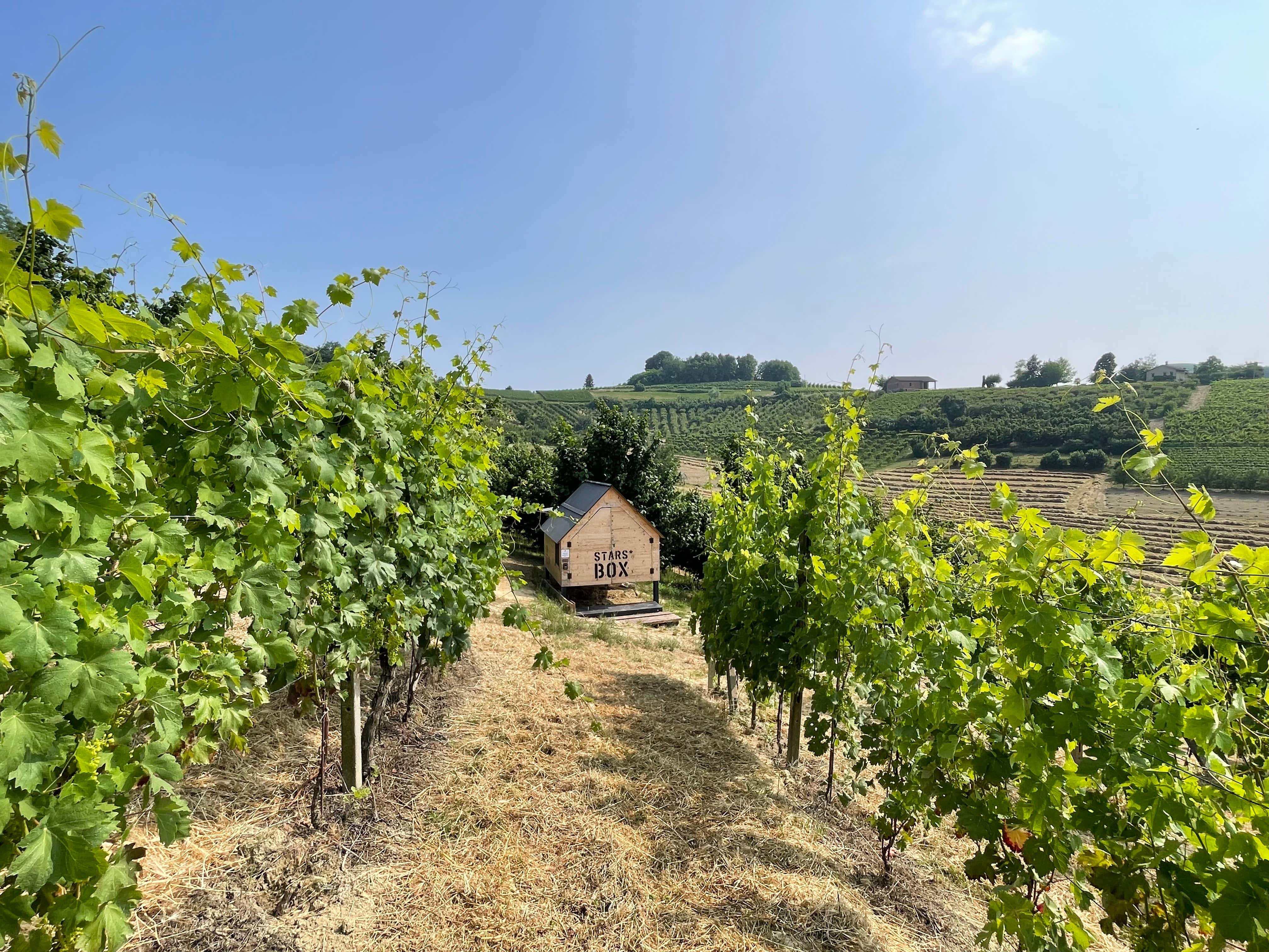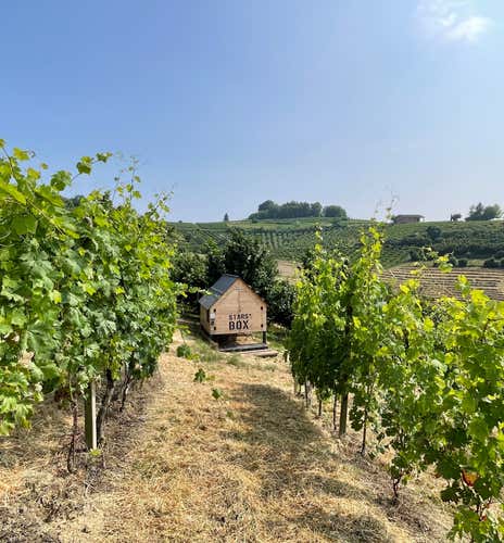 - StarsBOX vigneto: circondata dai filari di un vigneto, questa opzione si trova a pochi passi dal B&B e include una vasca idromassaggio privata, un caratteristico angolo illuminato con tavolino a forma di botte, perfetto per un brindisi con vista sulle colline.