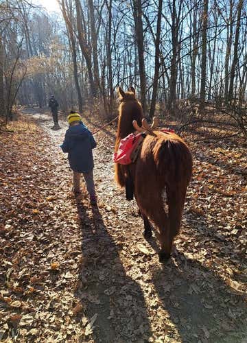 Una volta pronti, partiremo per un itinerario di circa 6 km all’interno del parco, immersi nel bosco e quasi completamente pianeggiante. Durante il tragitto, ci alterneremo nella conduzione degli animali, condividendo momenti fatti di piccole interazioni e qualche sosta per le foto.