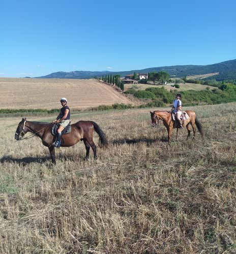 Una volta pronti, inizieremo la nostra passeggiata nel verde delle Crete Senesi. Il nostro itinerario alternerà tratti pianeggianti e leggeri dislivelli, immersi nella quiete della campagna toscana, con splendide viste sui campi, sulle colline circostanti e sulla Val d'Arbia. La guida ci precederà a cavallo, dandoci consigli e istruzioni lungo il cammino per una migliore esperienza.