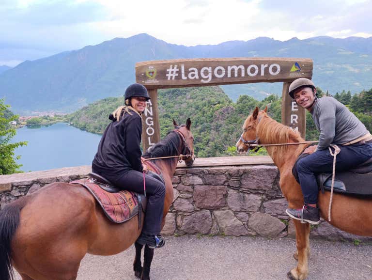 Ed eccoci pronti per la nostra passeggiata a cavallo: cavalcheremo nello scenario naturale del Parco del Lago Moro, lungo un percorso panoramico con vista sul Lago Moro, la Presolana e Schilpario; nelle giornate più limpide è possibile avvistare anche il Lago d'Iseo! La passeggiata sarà arricchita da storie e curiosità del territorio, dalla leggenda del Lago Moro alle incisioni rupestri riconosciute Patrimonio dell'Umanità UNESCO. La guida condurrà il gruppo a cavallo e la passeggiata si svolgerà al passo; la passeggiata a cavallo avrà durata 1 ora circa.