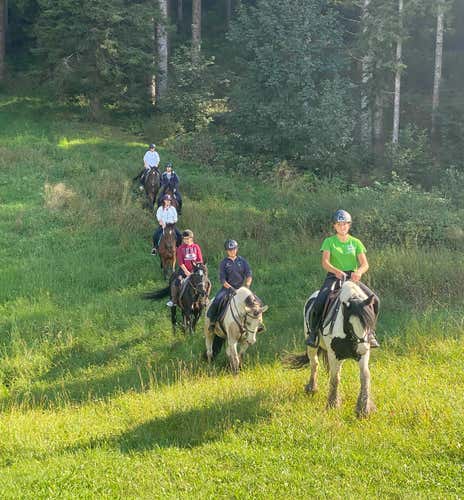 Avremo anche l'opportunità di godere di una vista panoramica sulla cittadina di Asiago e sui paesaggi rurali che la circondano. Dopo un percorso ad anello di circa 7 km e 2 ore di passeggiata, faremo ritorno al maneggio.