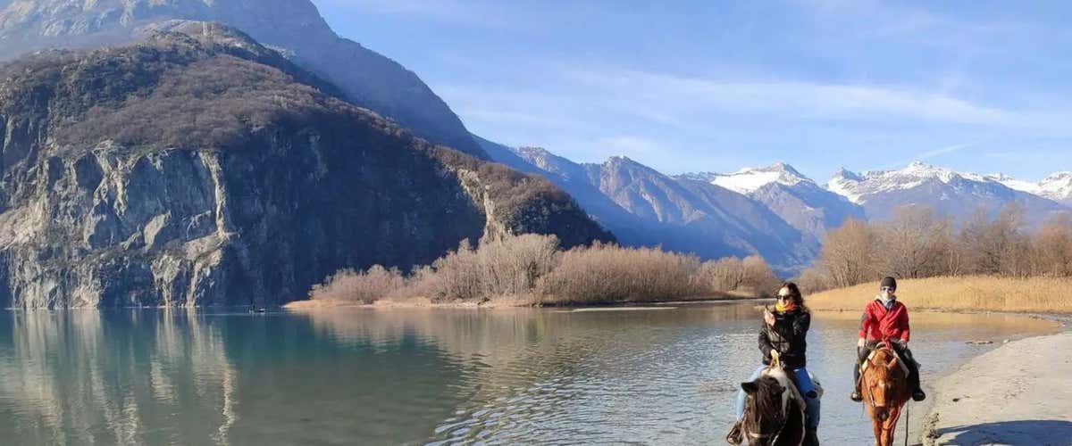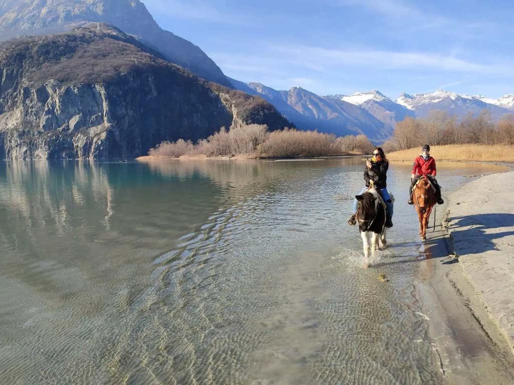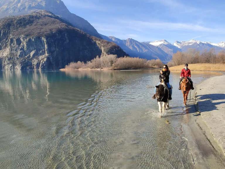 Passeggiata a cavallo sul Lago di Mezzola in Valchiavenna