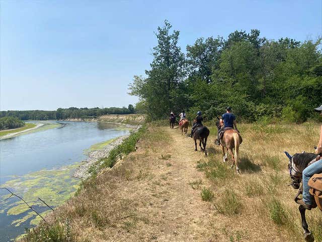 Ed eccoci pronti per la nostra passeggiata a cavallo: ci avventureremo nel Parco del Ticino, cavalcando nella rigogliosa vegetazione attraversata da corsi d'acqua; se selezionata la passeggiata di 2 ore, proveremo l'emozione di guadare il fiume in sella al nostro cavallo. E se saremo fortunati, potrebbe capitare di avvistare cicogne, aironi e altre specie migratorie lungo il percorso! La passeggiata a cavallo ha durata 1 o 2 ore in base all'opzione selezionata in fase di prenotazione.
