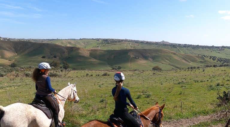 Partecipa alla nostra passeggiata a cavallo a Motta Sant'Anastasia: in compagnia di una guida equestre, ti avventurerai sulle colline che guardano alla città di Catania e al Monte Etna, godendo di una vista panoramica esclusiva allietata dal profumo di uliveti e agrumeti.