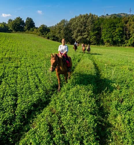 L'esperienza è di livello facile e adatta come prima passeggiata a cavallo.