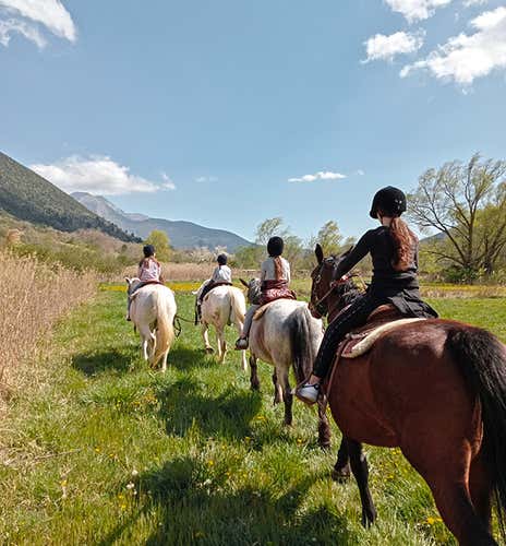 Ci avventureremo lungo le sponde del fiume Tirino e, mentre cavalcheremo, la guida ci illustrerà le meraviglie del Parco Nazionale del Gran Sasso, facendoci scoprire scorci incantevoli.