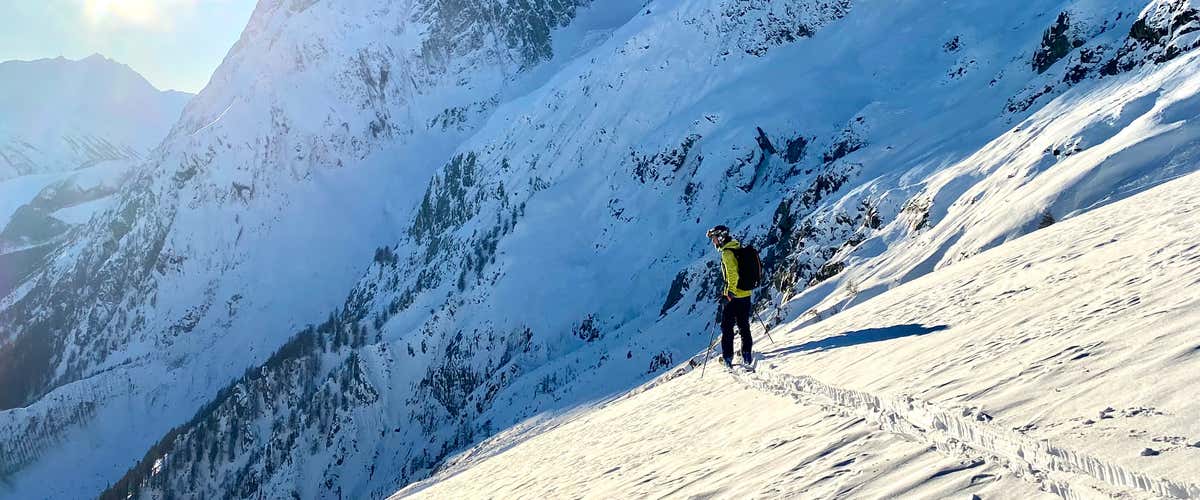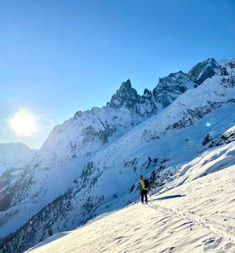 L’itinerario verrà personalizzato in base al livello del gruppo, alle condizioni meteo e ai vostri desideri. Durante la camminata ci saranno momenti per fermarsi, osservare, fare domande e comprendere da vicino come funziona un ambiente tanto estremo quanto affascinante, circondati da vette leggendarie come il Mont Blanc du Tacul e l’Aiguille Verte.