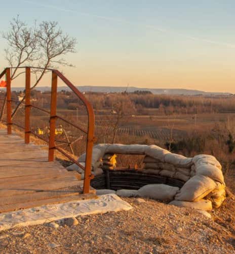 Inizieremo con una camminata guidata di circa 4-5 km che si snoda lungo il fianco della collina. Raggiungeremo una trincea recuperata a circa un chilometro dalla cantina, dove la guida ci svelerà i retroscena della Grande Guerra e l'importanza strategica di questo fronte.