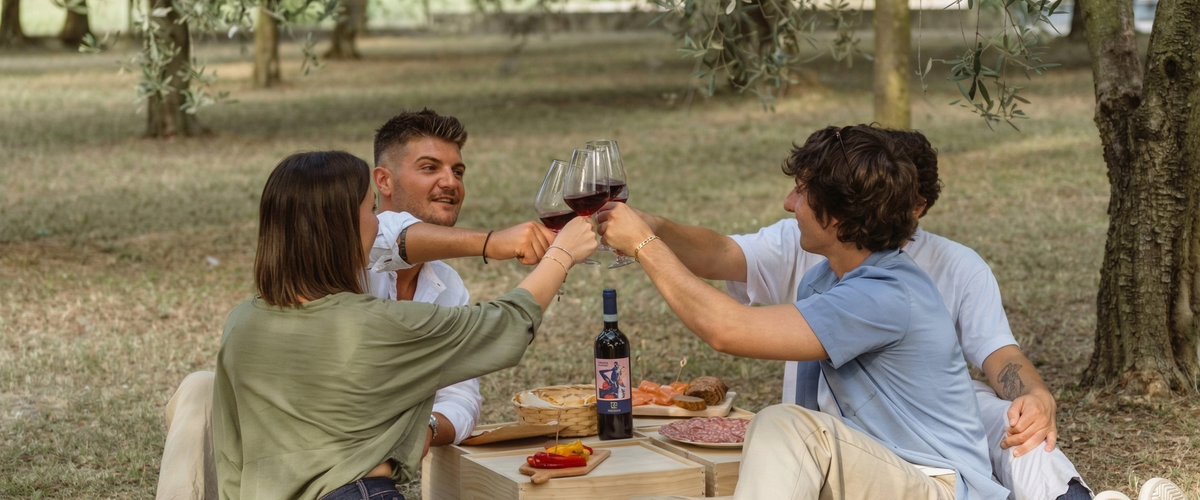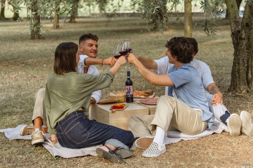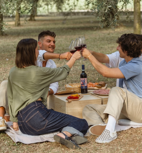 Saremo noi a scegliere l'angolo perfetto per il nostro relax, passeggiando tra i filari del vigneto o cercando la quiete sotto le fronde dell'uliveto. Una volta trovata la posizione ideale, potremo aprire il nostro cestino, preparato fresco ogni mattina, che include una selezione di salumi e formaggi locali, focacce, pizzette, frutta di stagione e un dolce.