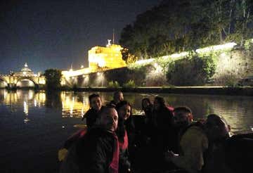 Ed eccoci pronti per avventurarci sul fiume Tevere, simbolo della città di Roma: dopo aver superato una piccola rapide, pagaieremo nelle acque tranquille che attraversano il centro storico, illuminate dal riflesso della luna. Nel corso della navigazione incontreremo i principali monumenti della capitale come Castel Sant'Angelo, davanti al quale sosteremo per il nostro brindisi (incluso) con calice di prosecco accompagnato da stuzzichini secchi assortiti. In lontananza, potremo anche avvistare la Basilica di San Pietro!