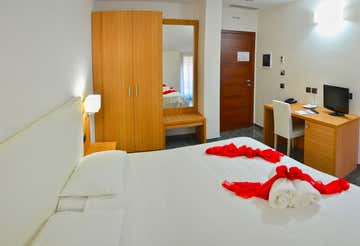 All'accoglienza riceverete le chiavi della vostra camera matrimoniale: questa si compone di letto matrimoniale con biancheria, scrivania, TV, telefono, cassaforte, frigobar e bagno privato con servizio igienico, doccia, asciugacapelli, asciugamani e prodotti per l'igiene personale. L'alloggio è dotato di riscaldamento, aria condizionata e connessione Wi-Fi.